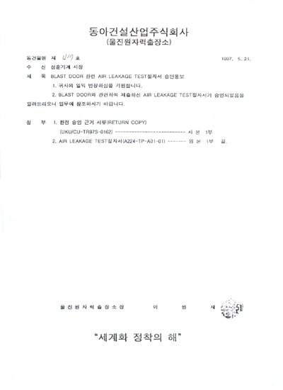 | 5) صفحة إدارة ألإختبار بدون إتـلاف | No.235 | T | 1997. 03. 14 | |||