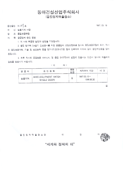 | 8) شــهـادة إختبار الحشية | Reg. TS-1509 | T | 1997. 09. 11 | |||