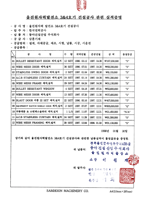 SAMHOON Mainly Works for CBRN Facilities, Special Doors And Thermal Sight