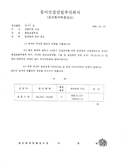 | BLAST DOOR | No.66 | T | 1996. 01. 12 ~ 1999. 01. 11 |