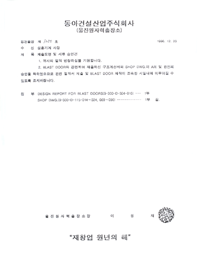 | 2) DOOR SHOP DWG | No.1250 | T | 1996. 12. 20 | |||
