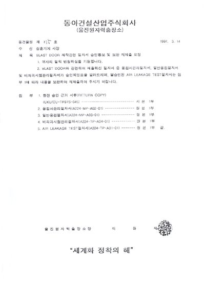 | BLAST DOOR | DEAWOO (WEUL-SUNG TRF) No.03-166 |