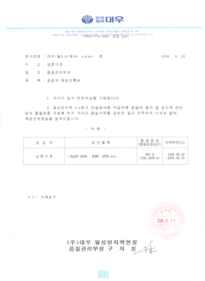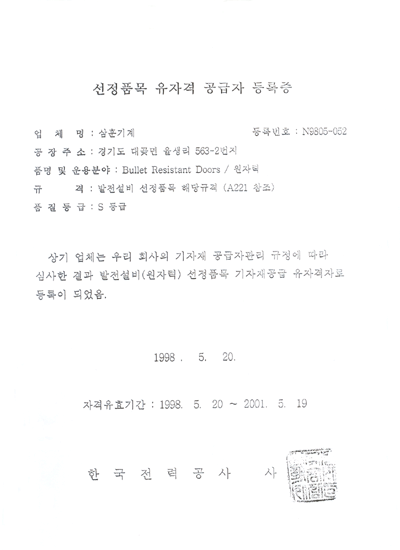 | Nuclear Item of KEPCO | N9805-051 | T | 1998. 05. 20