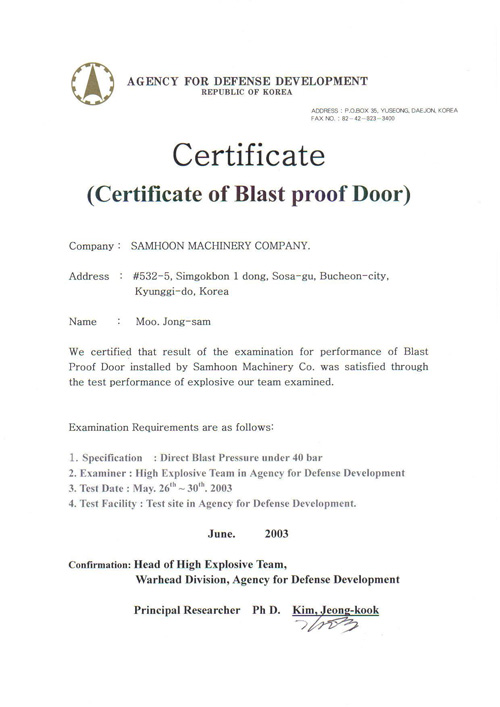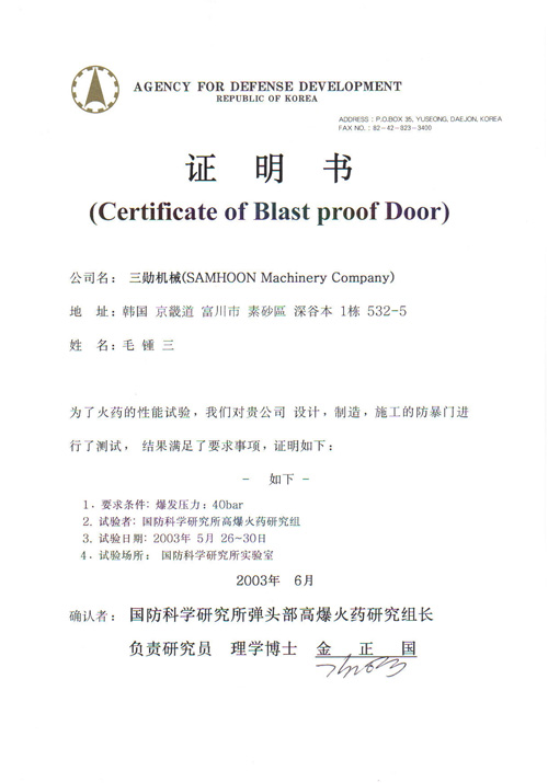 Certificate of Blast proof Door(B) view