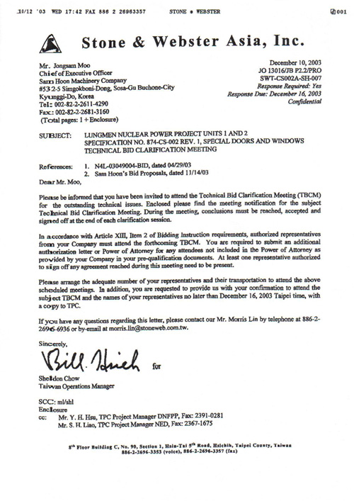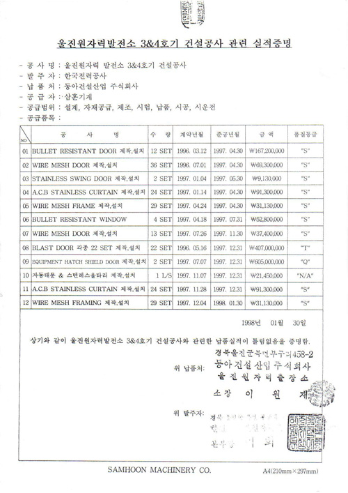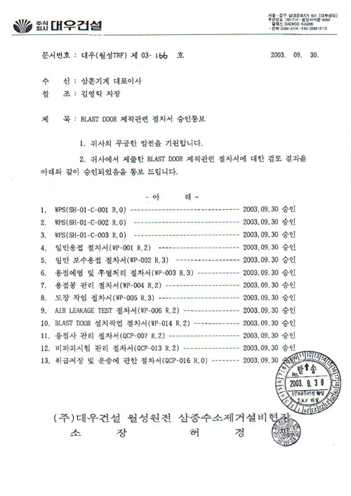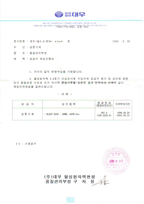 Vendor Approve of WOULSONG NUCLEAR POWER PLANT (DAEWOO) view